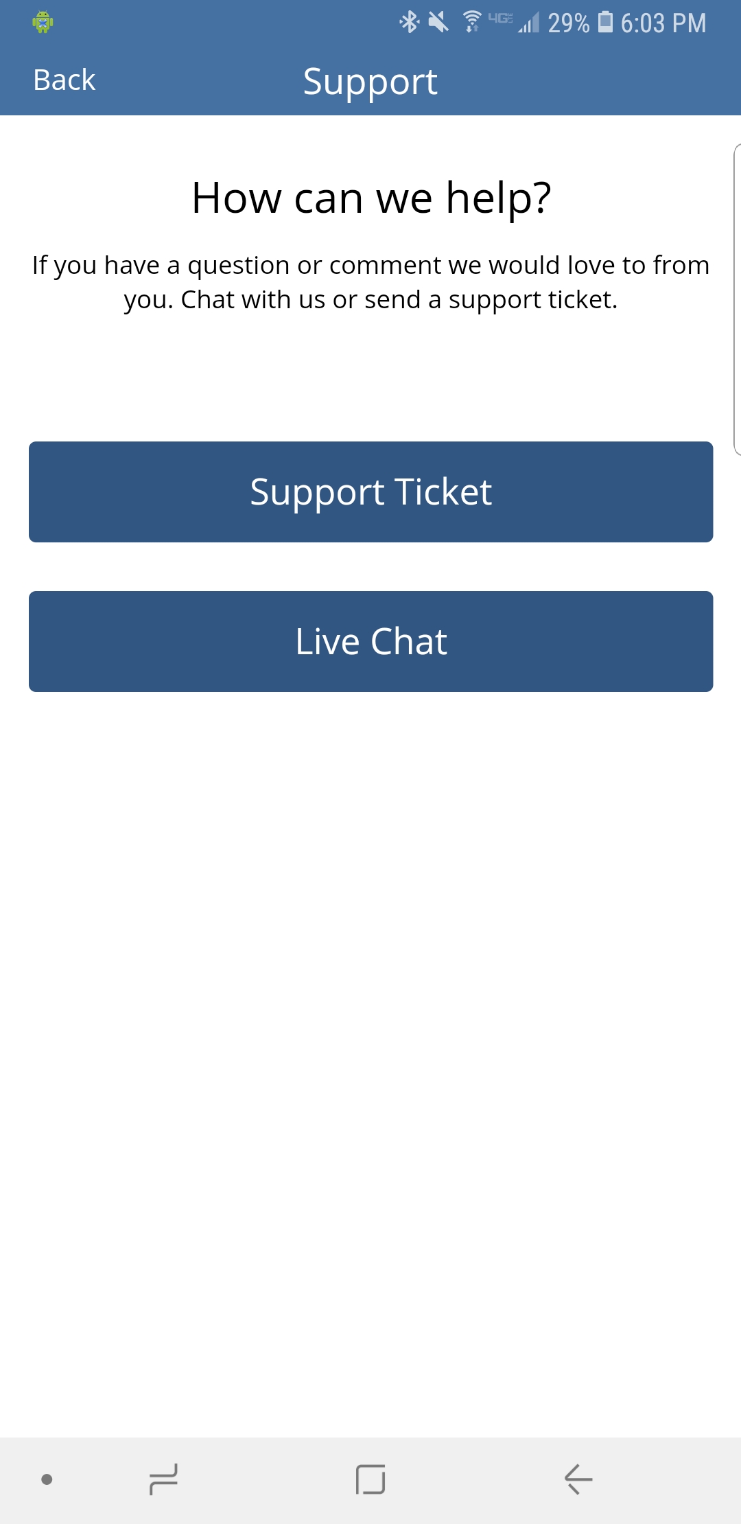 You may choose to submit a “Support Ticket” orĀ “Live Chat” with one of our representatives.
